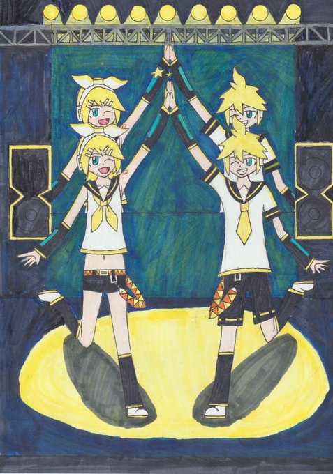 #鏡音誕生祭2022 #鏡音リン #鏡音レン 2人で仲良くハイタッチ! 【過去絵】