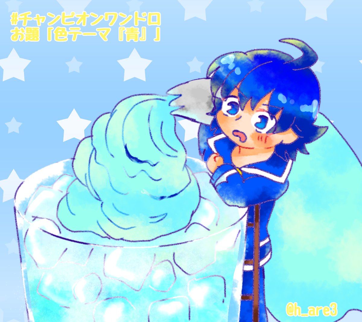 #チャンピオン版深夜の真剣お絵描き60分一本勝負 青~🥤