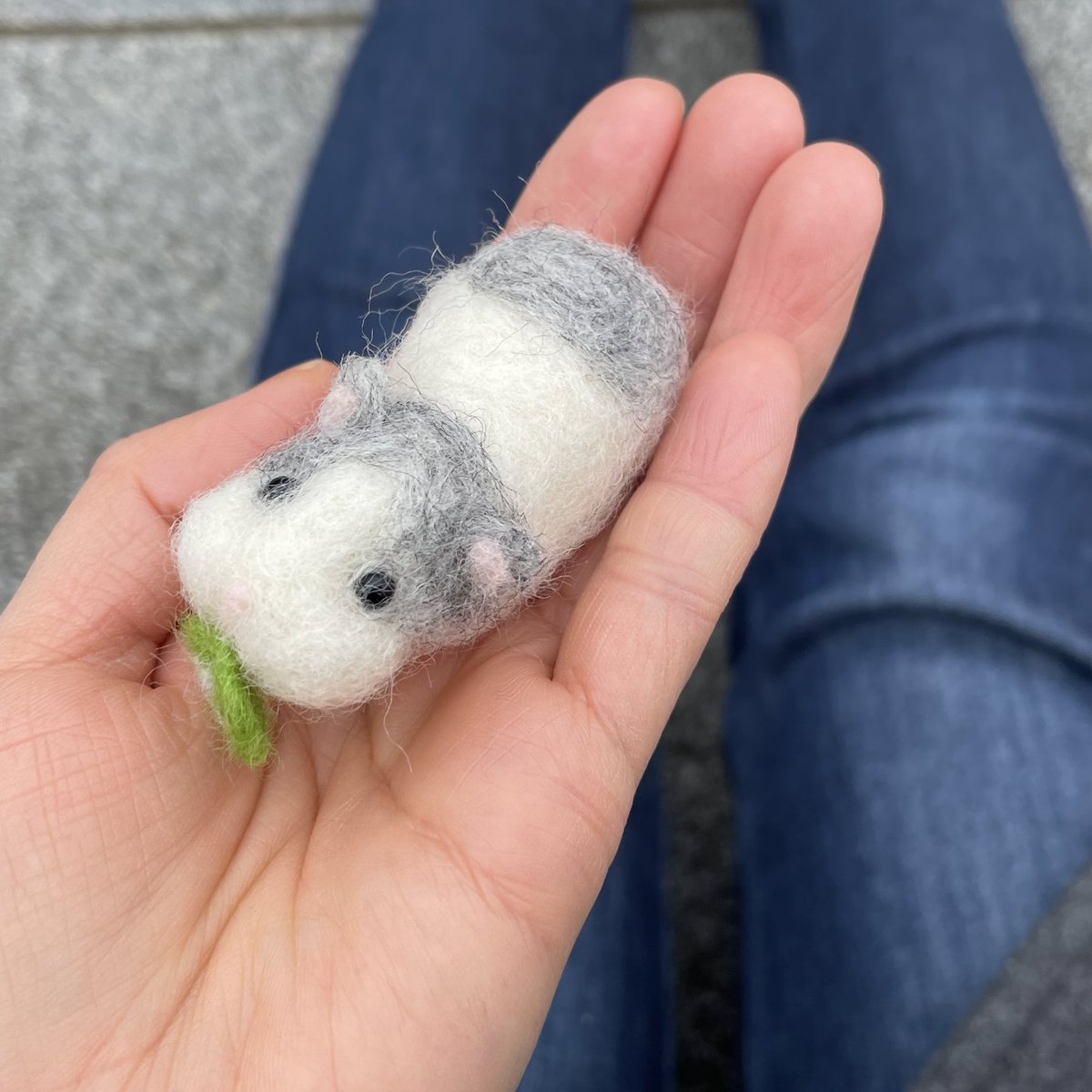 モルモット🐹🥬 Guinea pig 🎥 youtu.be/jPC0YaMyFzM #woolfelt #needlefelt #羊毛フェルト #モルモット #ねずみ #ダイソー #DAISO