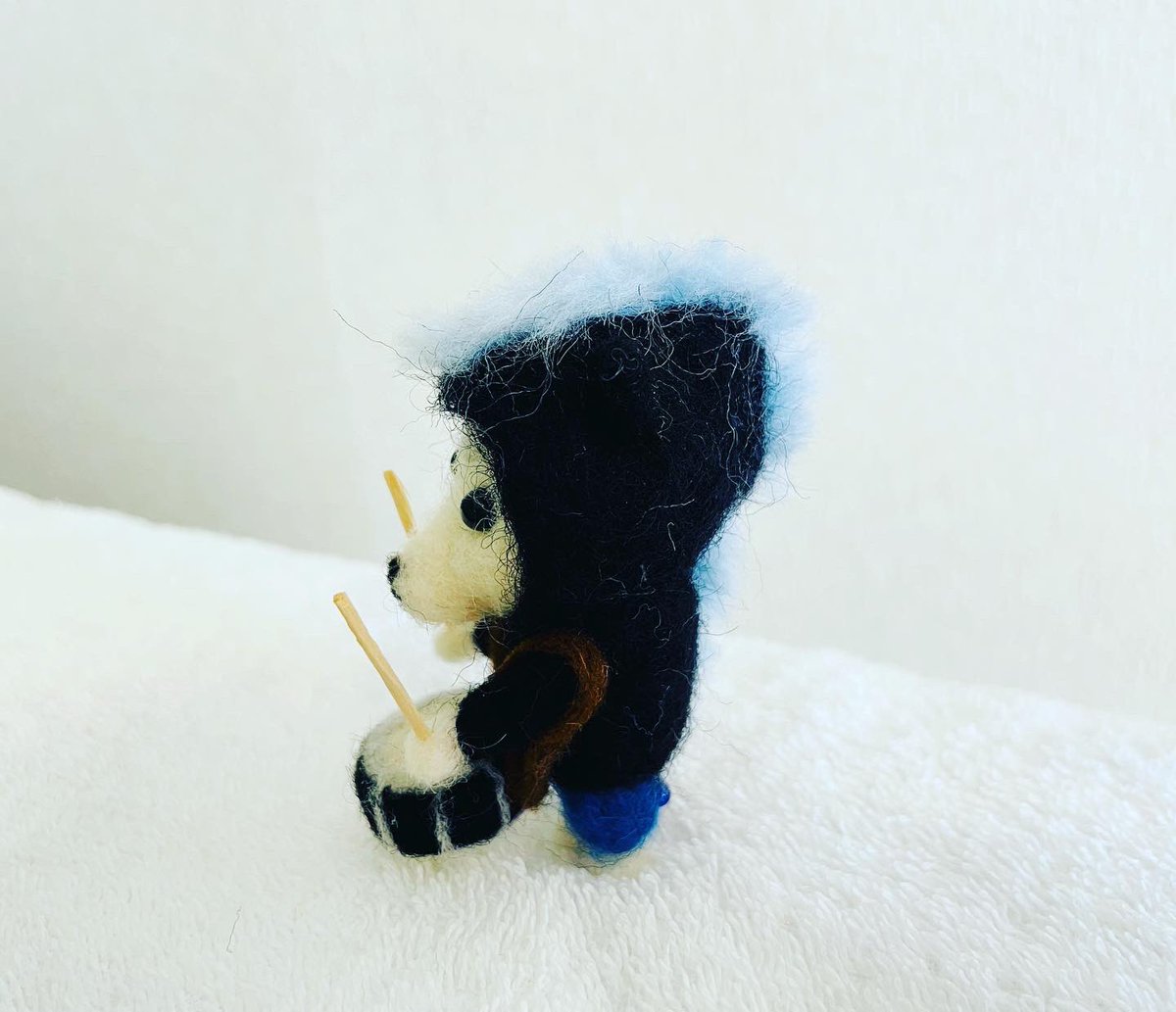 レインコートを着たレッサーパンダ🐼 A lesser panda wearing a raincoat. 🎥 youtu.be/gEEL1DVnlbo #needlefelt #羊毛フェルト #lesserpanda