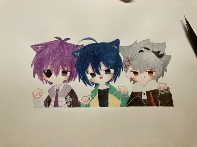 にゃんにゃんにゃんの日なので御三方になってもろた🐈 #ヨシヅキ参謀 #紺野和泉 #ごみやーと