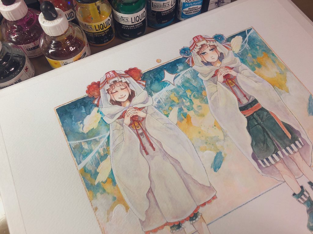 遅れながらも、新作と過去作で参加させていただきます...❕ スキャンしてからの加工が下手すぎることに気づき始めたこの頃。精進しよう。 💭原画はもう少し綺麗だよ(小声) 毎度のことタグ飛んでみてくださいね🌻素敵な作家さんに巡り会えます🥰 #アーベインガールズイラスト展 #インク #水彩