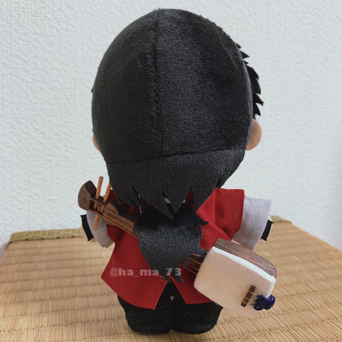 ぬい万斉と三味線を作りました。 衣装はちよさん(@Fujinikuman32)さんに作って頂きました...!!!!!!!手甲も着けてて本格仕様です!! #河上万斉生誕祭2021 #河上万斉生誕祭 #河上万斉誕生祭