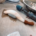 4枚目の醤油皿と箸と箸置きも石で作りました