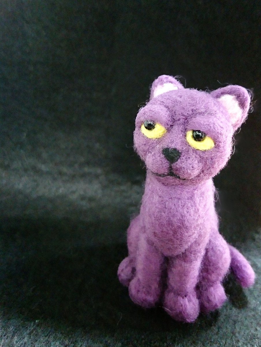 紫だけどクロネコのつもり… 眠そうに仕上がった(笑) #羊毛フェルト