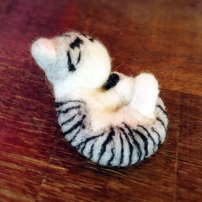 新作のおやすみにゃんこ♪ 赤ちゃんポーズ(笑) #羊毛フェルト #ハンドメイド #猫好きさんと繋がりたい