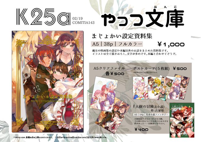 お品書き出来ました‼📝 2/19(日)のコミティア143に古家彰(@Huruya_Akira)さんと参戦します! 通販についてはツリーをご参照ください。 #COMITIA143 #コミティア143