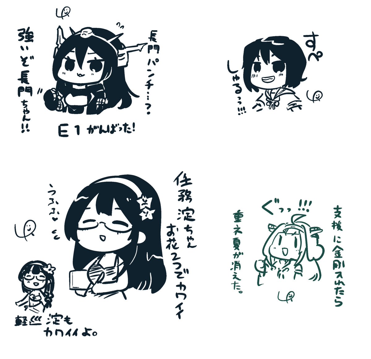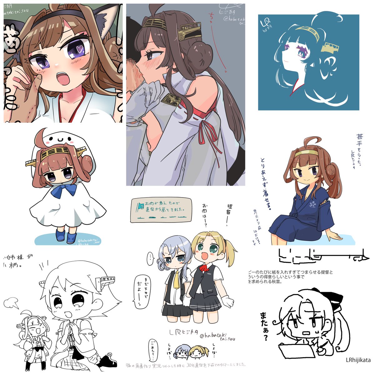 金剛さんに頼まれてお使いに行く比叡(小)と後ろから見守る金剛さんでした。楽しくて細々いろいろ描かせて頂きました。