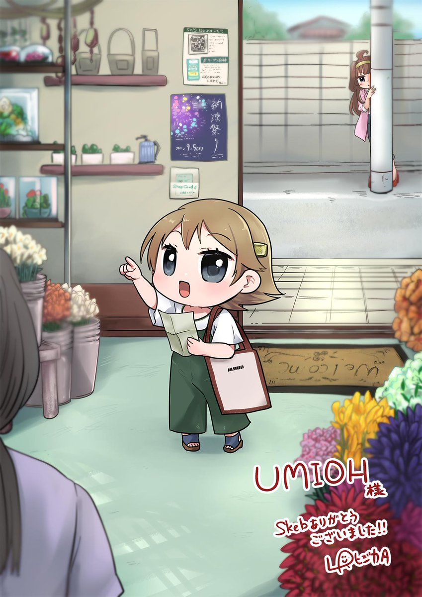 62 175 金剛さんに頼まれてお使いに行く比叡(小)と後ろから見守る金剛さんでした。楽しくて細々いろいろ描かせて頂きました。 23/08/12 22:32