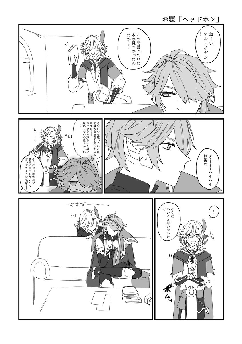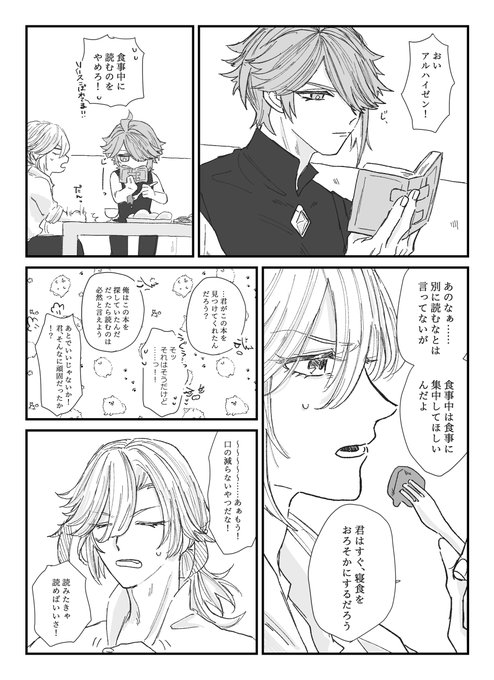 アルカヴェ/甘やかしの餌付け 🏛️が🌱の探していた本を持ってきて早く読みたいけどご飯を疎かにしているし🏛️がそれを見て揶揄うつもりであーんをしてる話 ※完璧じゃない後輩と同時系列設定 twitter.com/hac_gnsn/statu…