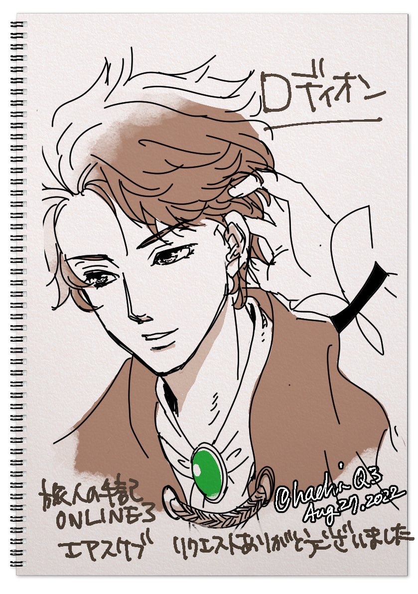 「ティッツィアーノ」 女にモテるけど結局は相手にしない、ふざけてるけど心の芯の部分はどうなのか、いつかアレに…と考えながら描いちゃいましたね…。いつか時間をかけて描いてみたいです!リクありがとうございました! #旅人の手記ONLINE3_エアスケブ