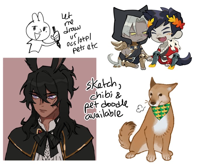 opening 4 comm slots only for pet doodle or character sketch option, send me a DM if interested more examples, prices and TOS hachibani.weebly.com/pricesample.ht…
