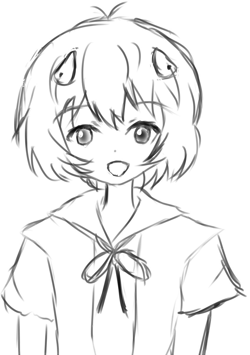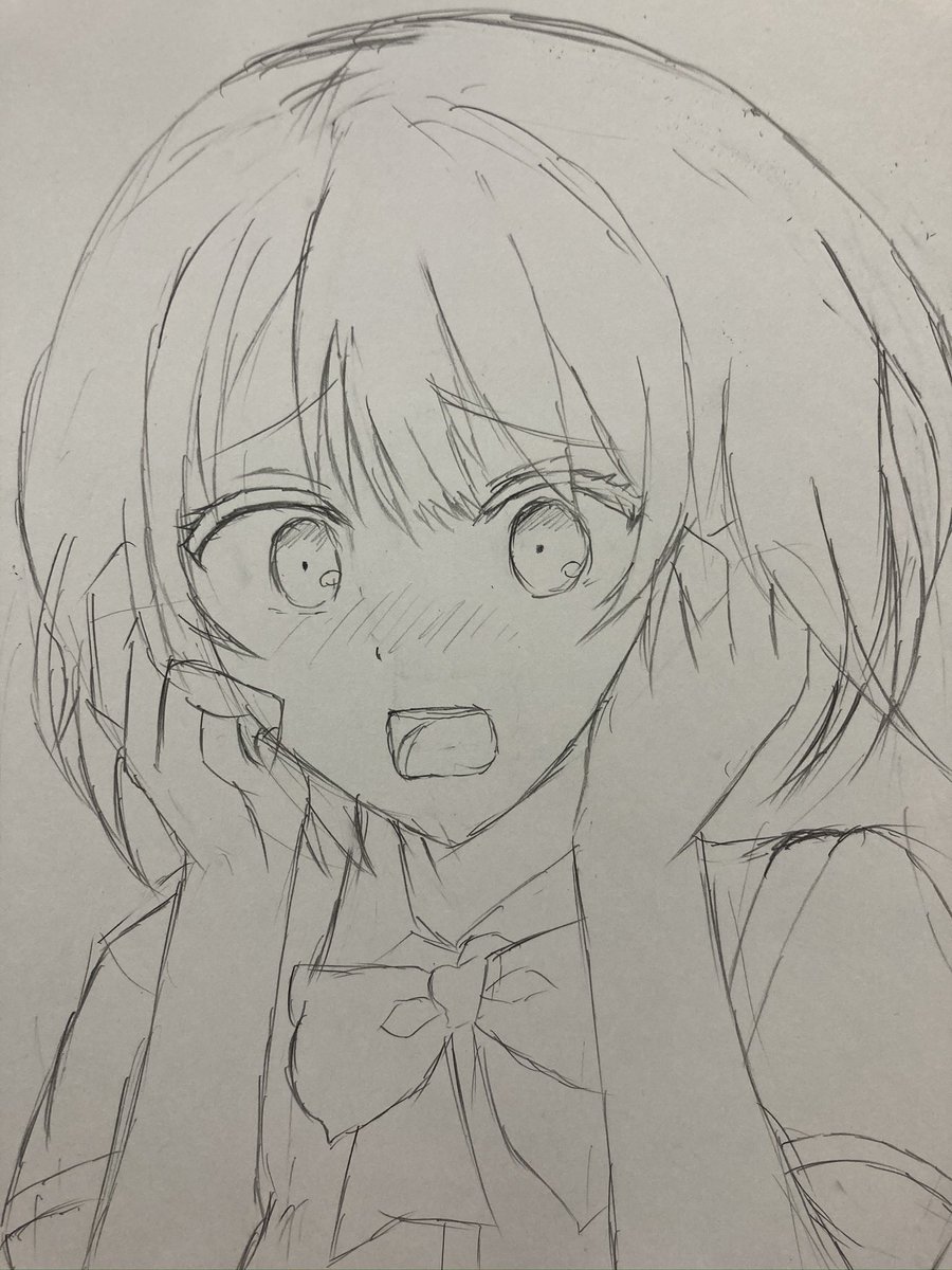 ザクザク落書き😊ドアップバストアップは逆にパーツの位置どりがムズイ🤣昨日40度の熱がでたので、さっきPCR受けたら唾液、鼻の両方で妖精でした🥲更新途絶えるかも