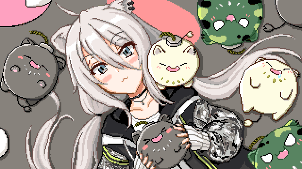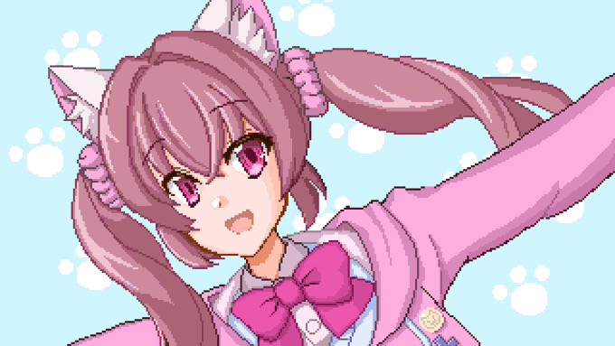 リクエスト頂きました! 猫宮みみさん(@nekomiya_mimi)です! リプは背景透過版ですー FAタグわかんなかったのでこちらで。 #ねこみみないしょばなし #ドット絵 #pixelart