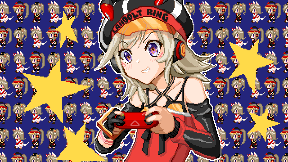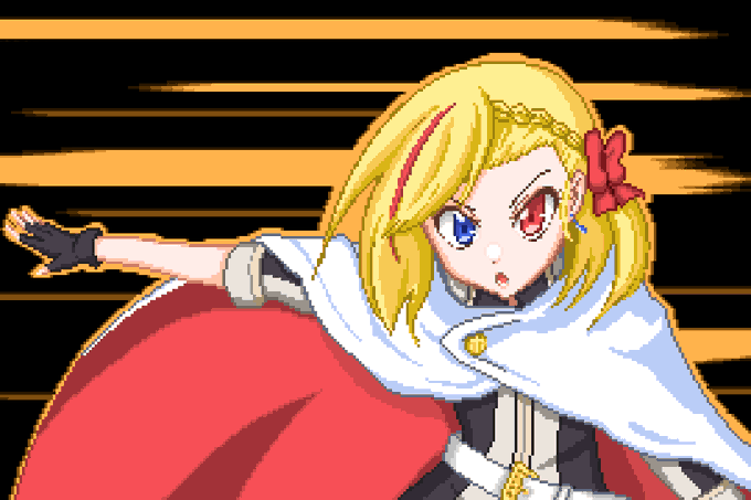 お待たせしました! リクエスト頂きました! ホリグPさん(@horigup)です! 某ゲームのカットイン風 リプは背景透過差分。 #ドット絵 #ホリグPict