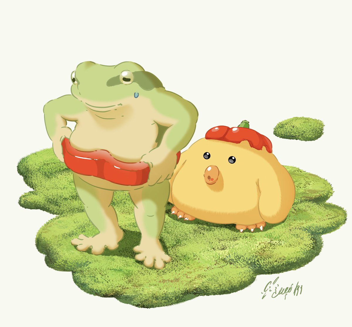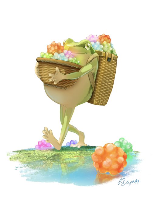 『まんぷくかえるのおすそわけ』 大好評発売中です🍒 切り株のお家で暮らすかえる。 ある日、後ろから大きな影があらわれて大ピンチに…!? かえる、ぽてまる、もぐもぐさんの出会いを描いたストーリー画集🐸 #まんぷくかえる amazon.co.jp/dp/404897159X/…