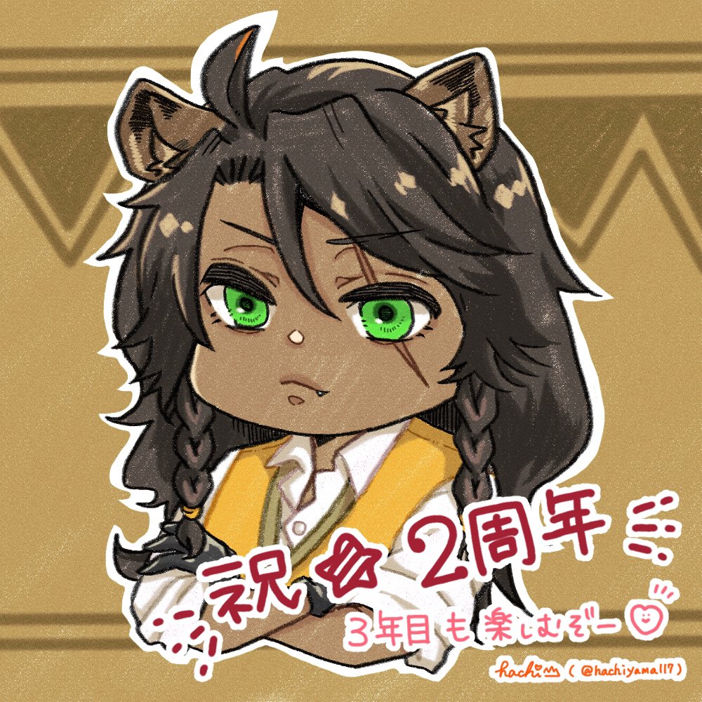 2周年おめでとうございます!!!🎂🎉🎊 もう2年も経つのね……下の子の5ヶ月記念でバタバタしていたけど、その日にスタートできて良かった💋❤️🔥 3年目も楽しませて頂きます🙇🏻♀️🙇🏻♀️🙇🏻♀️ #ツイステ2周年 #twstファンアート