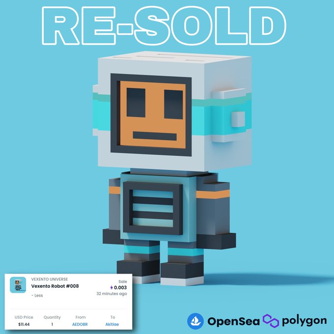 🔥 RE-SOLD 🚀 Lets Go Buddy 🤘🏽🤖 Website : vexentouniverse.com Instagram : instagram.com/vexento_nft Marketplace : opensea.io/collection/vex… #NFT #NFTdrop #NFTProject #NFTCollection #nftcollector #NFT宣伝枠 #NFTJapan #voxelart
