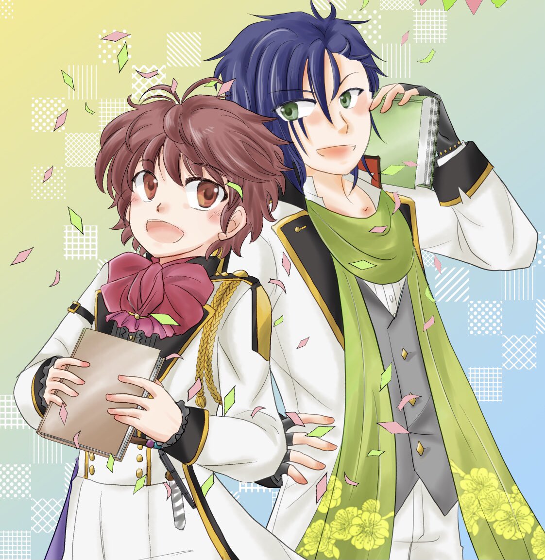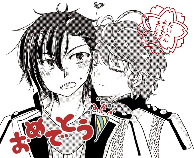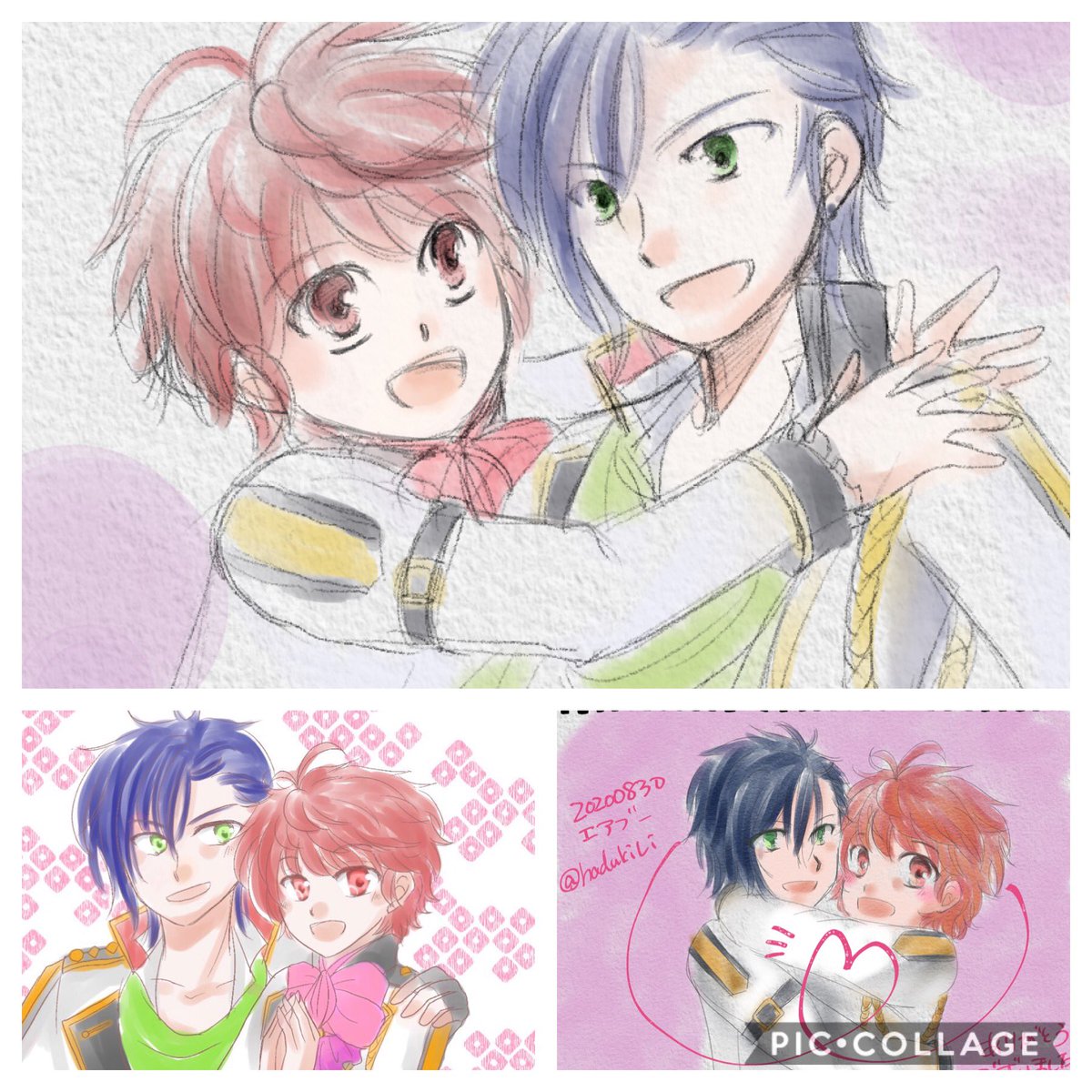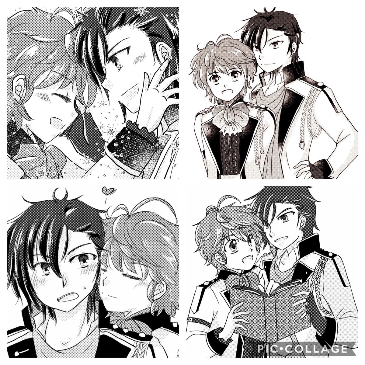 #このタグを見た人は推しの初描きと現在の絵を載せる 初ではないけど2017年の初しがむしゃ合同誌と明日の新刊表紙の元絵 全体的に少年から青年になっている(特にしが)とペンタッチがアニメ調から少女漫画寄りになっている…