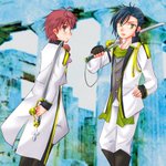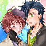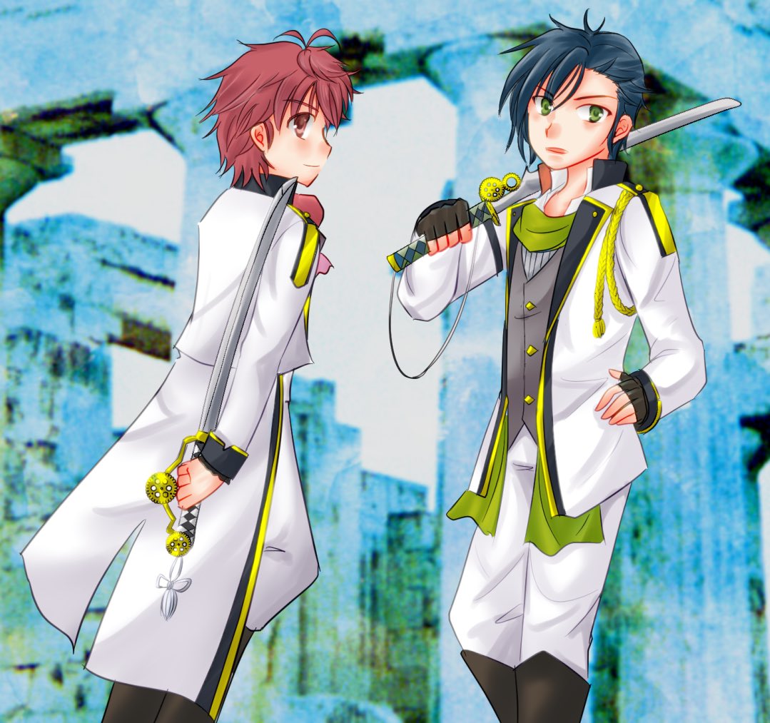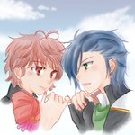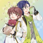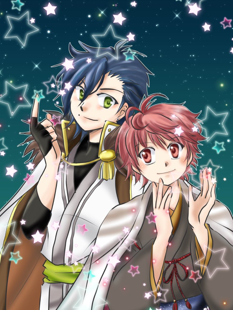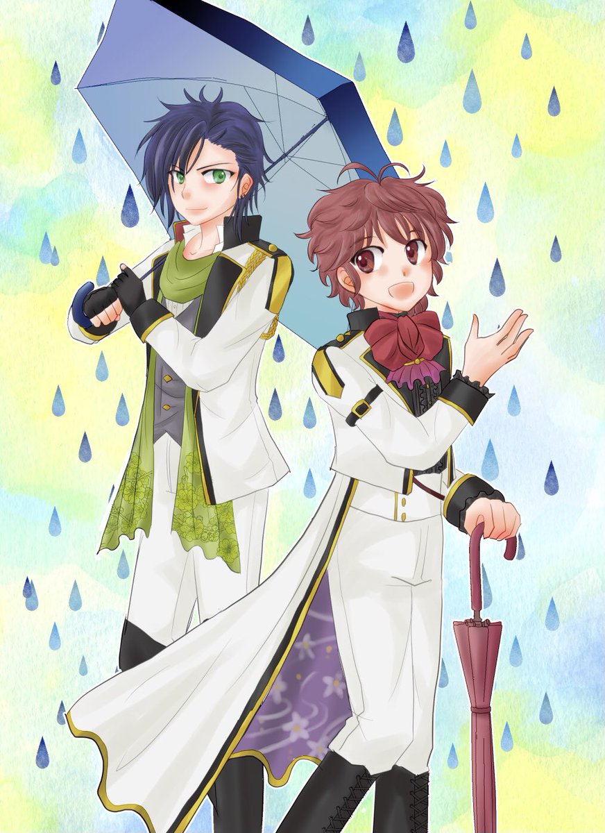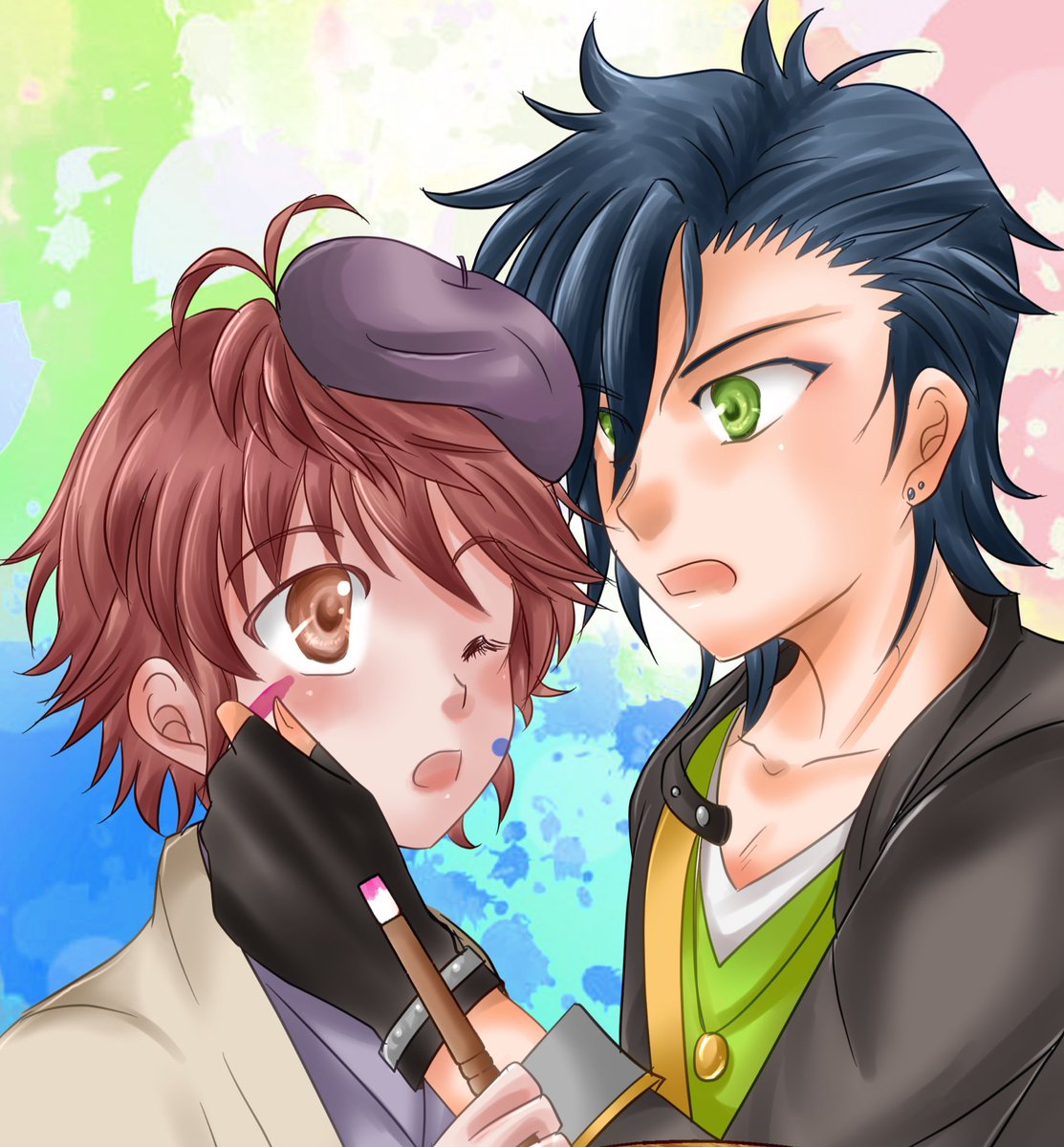 #このタグを見た人は推しの初描きと現在の絵を載せる 初ではないけど2017年の初しがむしゃ合同誌と明日の新刊表紙の元絵 全体的に少年から青年になっている(特にしが)とペンタッチがアニメ調から少女漫画寄りになっている…
