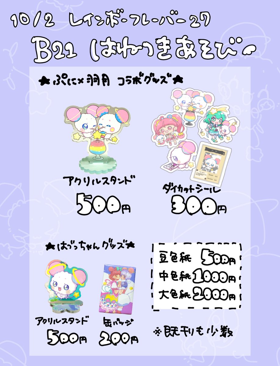 32 54 #レインボーフレーバー27 🌟🌟お品書き🌟🌟 グッズ中心で色々出します!!!!ちゃんぷにと一緒に頑張るぞ〜〜🫶🏻 22/09/25 09:00