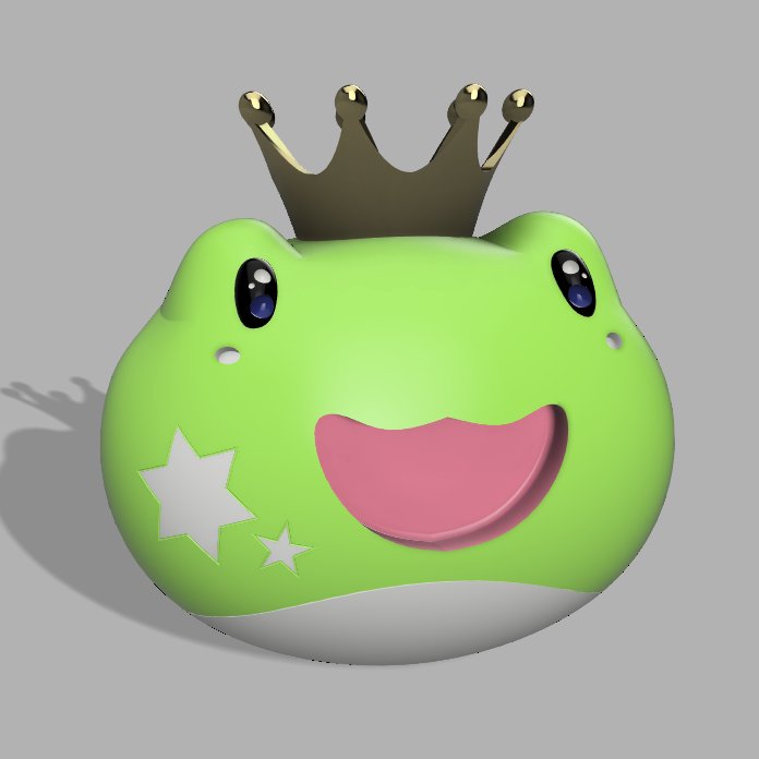彩咲茜さんのカエルさん(名前わからないごめんなさい)の生首3Dモデルできた! なんかいいアイデア思いついたら3Dプリンタかけてみる! #けろあーと