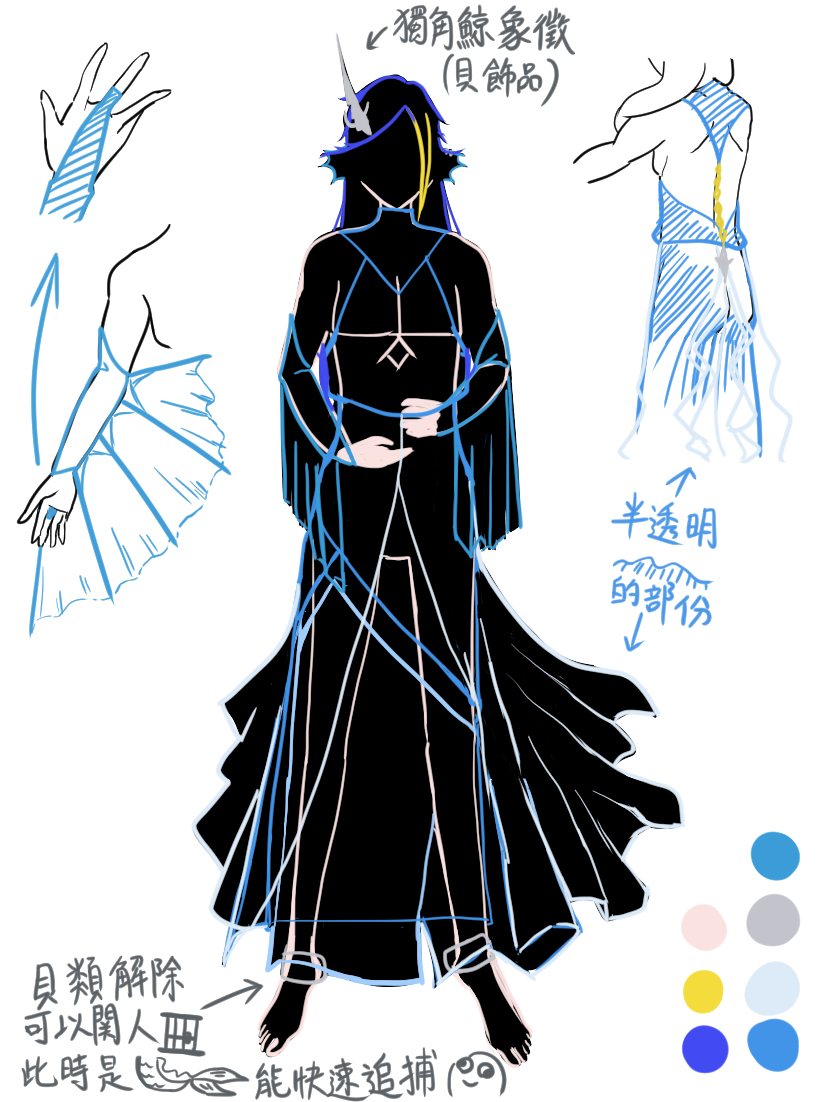 #2023巴蘭3月新裝 #賞鯨圖 今天抽空填坑,把昨天來不及的衣服縫補完🥺 順便補充後背設定 給自己一個交代,不然會一直想🥺
