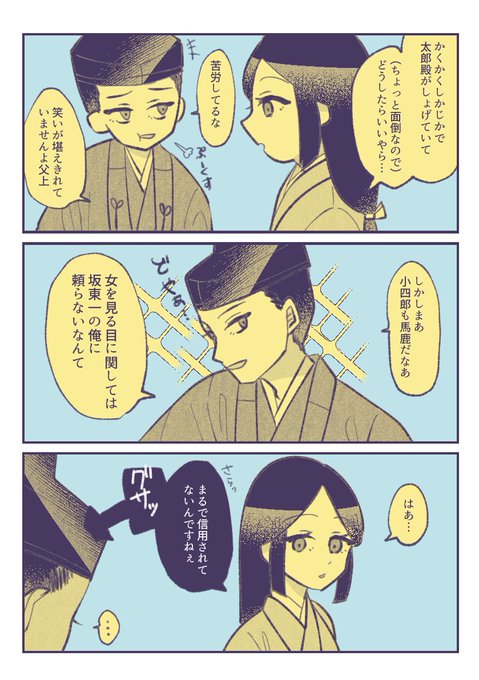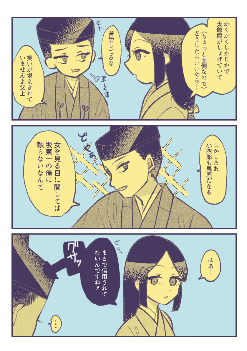 鎌倉殿前回分(29回目)の感想絵 女子を語る小四郎と内心爆笑してるであろう平六 #鎌倉殿の13人 #鎌倉絵 #殿絵