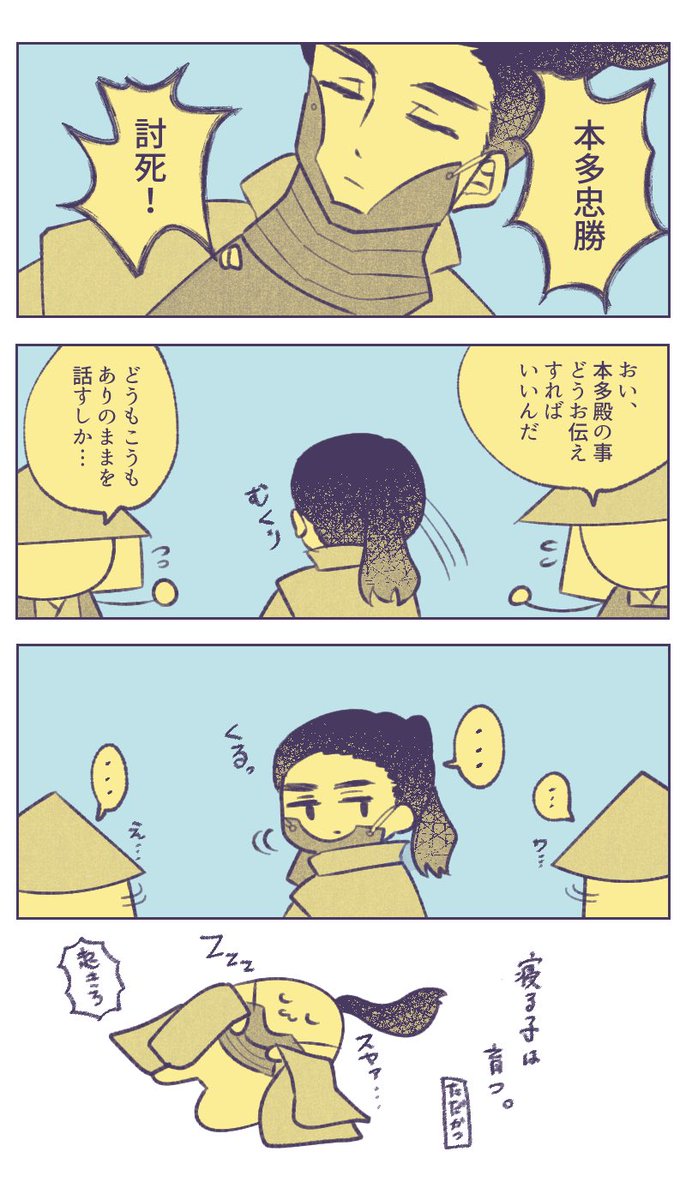 25 89 戦の前、緊張して寝られなくて本番で寝るとか忠勝なら有り得そう(失礼) #どうする家康 #どうする絵 23/01/24 21:42