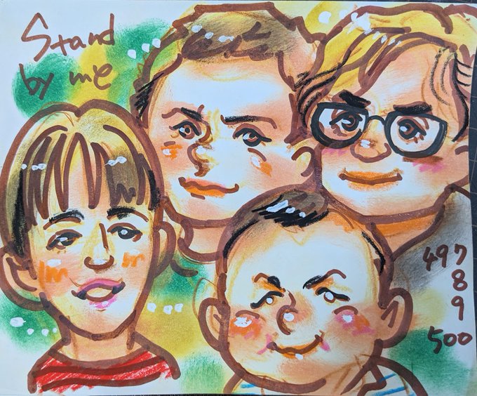 5 30 夏休みの冒険「スタンド・バイ・ミー」 #似顔絵 #イラスト #千本ノック #スティーブン・キング 青春映画として「it」がスタンドバイミーを超え切れなかったのはリヴァー・フェニックスがいたからだよね 23/08/11 18:03
