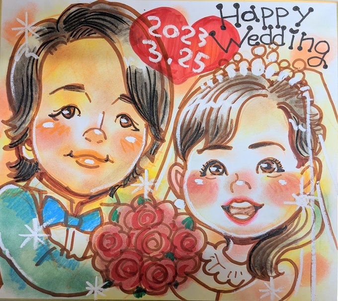 0 2 色紙でウェディングサンプル #イラスト #似顔絵 中村倫也さん 水卜麻美さん 23/03/28 15:50