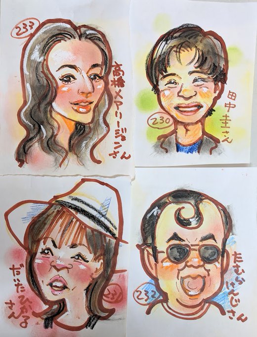 「た」のつく有名人 高橋メアリージュンさん 田中圭さん だいたひかるさん たむらけんじさん #イラスト #似顔絵 #千本ノック