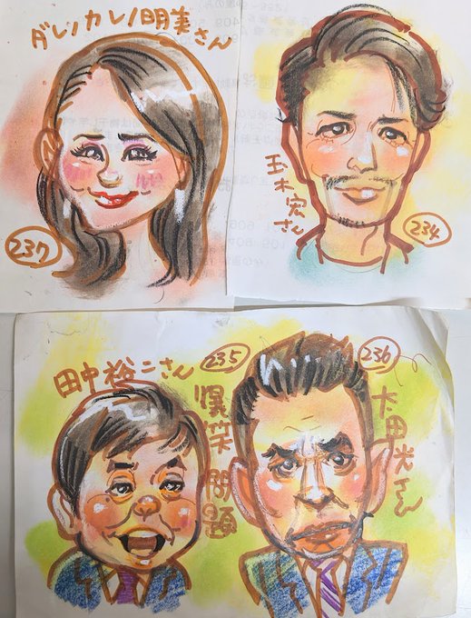 「た」のつく有名人 ダレノガレ明美さん 玉木宏さん 爆笑問題 田中裕二さん 太田光さん #イラスト #似顔絵 #千本ノック