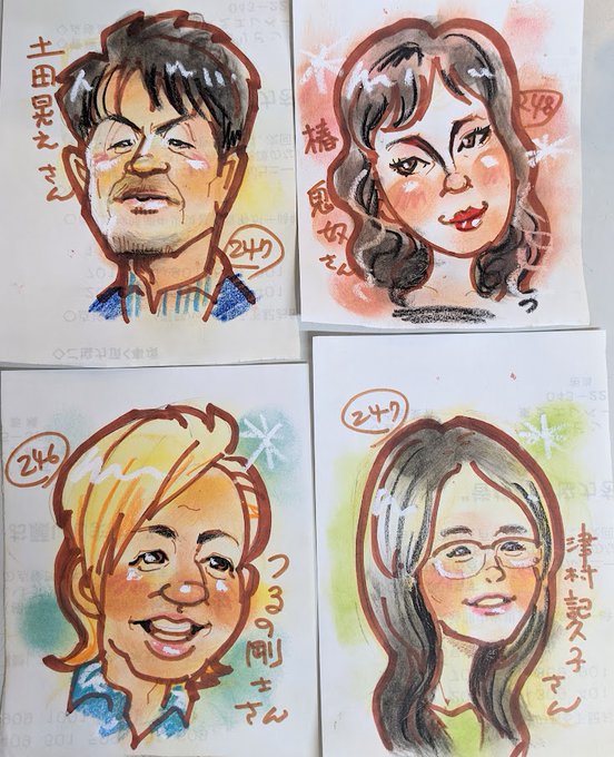 「つ」のつく有名人 土田晃之さん 椿鬼奴さん つるの剛士さん 津村記久子さん #イラスト #千本ノック #似顔絵 津村さんは大好きな小説家さんで「ポトスライムの舟」で何度も泣いた記憶がある