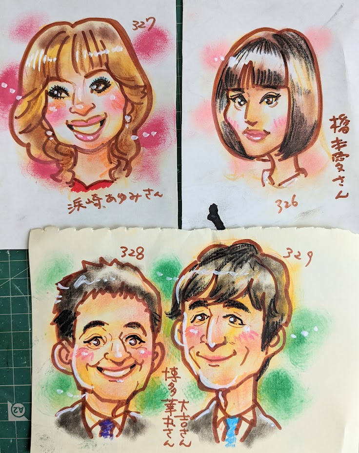 「は」のつく有名人 #似顔絵 #イラスト #千本ノック 浜崎あゆみさん 橋本愛さん 博多花丸 大吉さん 「は」の人はそこそこ多くて助かる