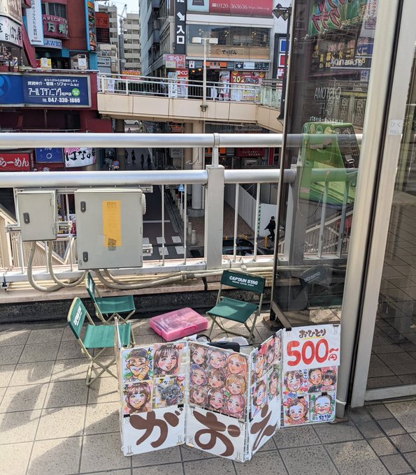 1 8 松戸駅で似顔絵 開始してます!最近涼しくなったので晴れてもどうかなーと思われましたが、めっちゃ気候いいです #似顔絵 #イラスト #松戸駅 東口(イトーヨーカドー側)の電話ボックスの脇にコソッといます 23/04/23 14:25