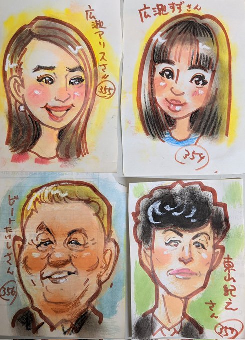 「ひ」のつく有名人 #似顔絵 #イラスト #千本ノック 広瀬アリスさん 広瀬すずさん ビートたけしさん 東山紀之さん