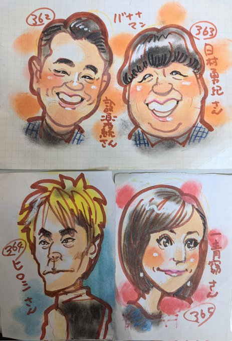 6 30 「ひ」のつく有名人 #似顔絵 #イラスト #千本ノック バナナマン 日村勇紀さん 設楽統さん ヒロシさん 一青窈さん 23/05/09 13:32
