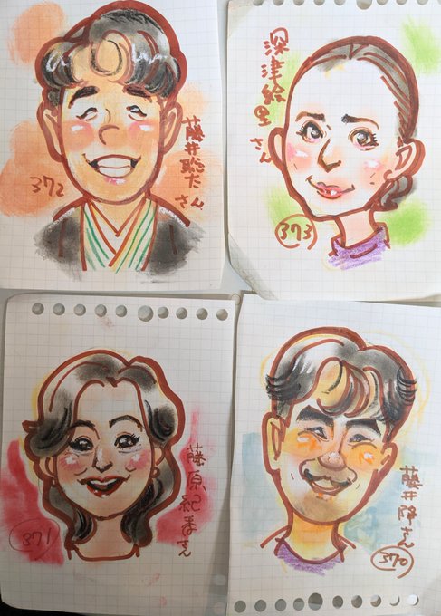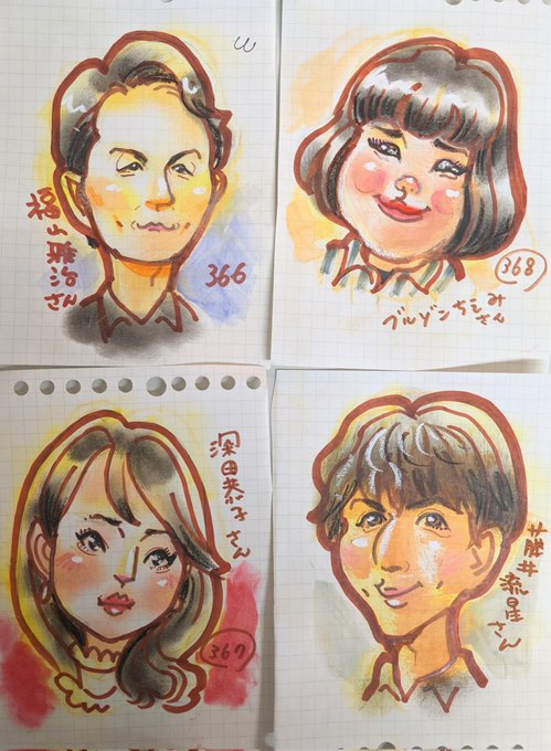 「ふ」のつく有名人 #似顔絵 #イラスト #千本ノック 藤井聡太さん 深津絵里さん 藤原紀香さん 藤井隆さん