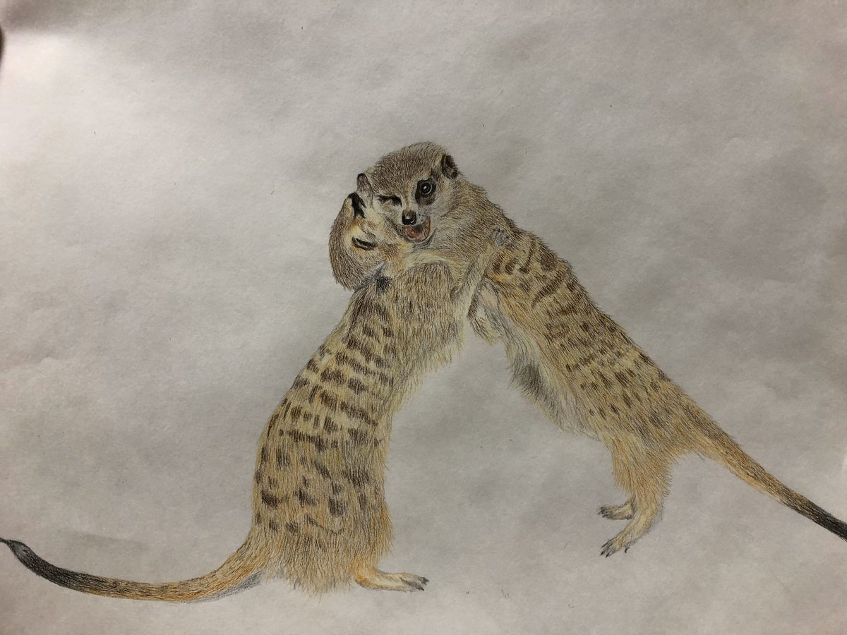 ミーアキャット ! はぐときびで描きましたが右側のきびの体は今は亡きひなちゃんです。 元の写真のひなちゃんは顔俯いてたのできびちゃんのお顔にしました。 ある意味家族写真かな笑 #ミーアキャット #色鉛筆画 #色鉛筆画初心者 #色鉛筆 #絵が上手くなりたい