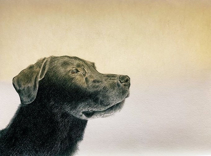 0 3 今回、友達のお家のラブちゃん描かせてもらってます。写真では下の方を向いていたけど上を見ているような感じで描きました。 紙も選ばないといけないんだな。 #色鉛筆画 #色鉛筆画初心者 #犬 #ラブラドールレトリーバー #黒ラブ 20/04/11 22:40