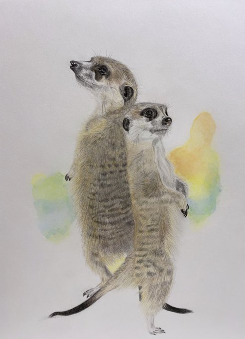 0 12 ミーアキャット ! はぐときびで描きましたが右側のきびの体は今は亡きひなちゃんです。 元の写真のひなちゃんは顔俯いてたのできびちゃんのお顔にしました。 ある意味家族写真かな笑 #ミーアキャット #色鉛筆画 #色鉛筆画初心者 #色鉛筆 #絵が上手くなりたい 20/05/22 08:11