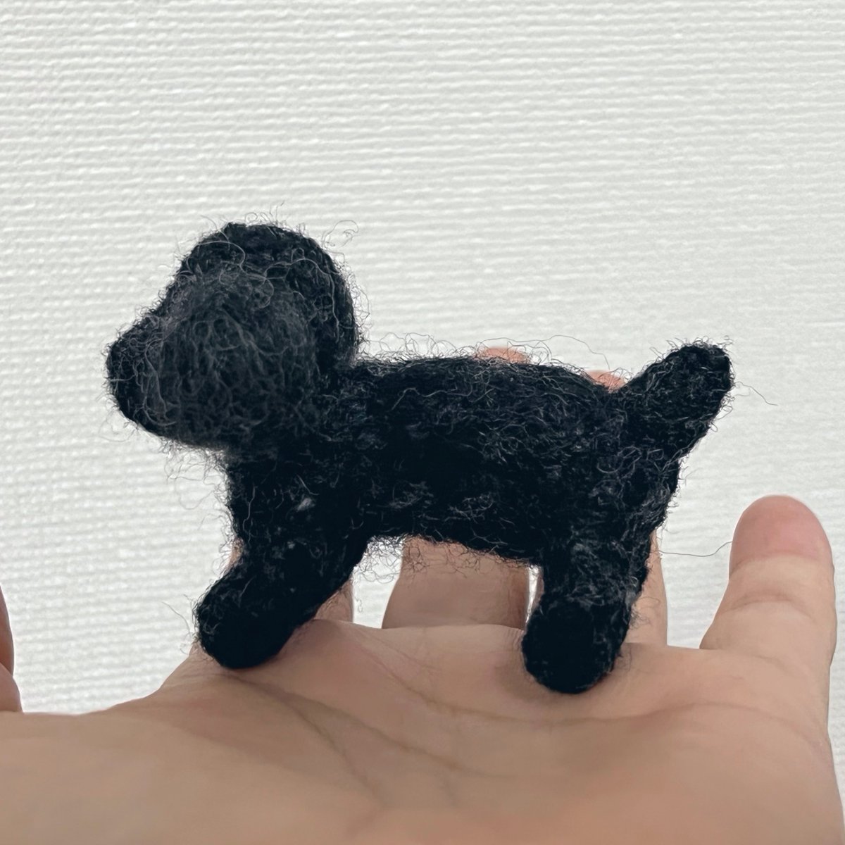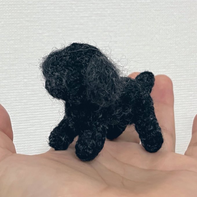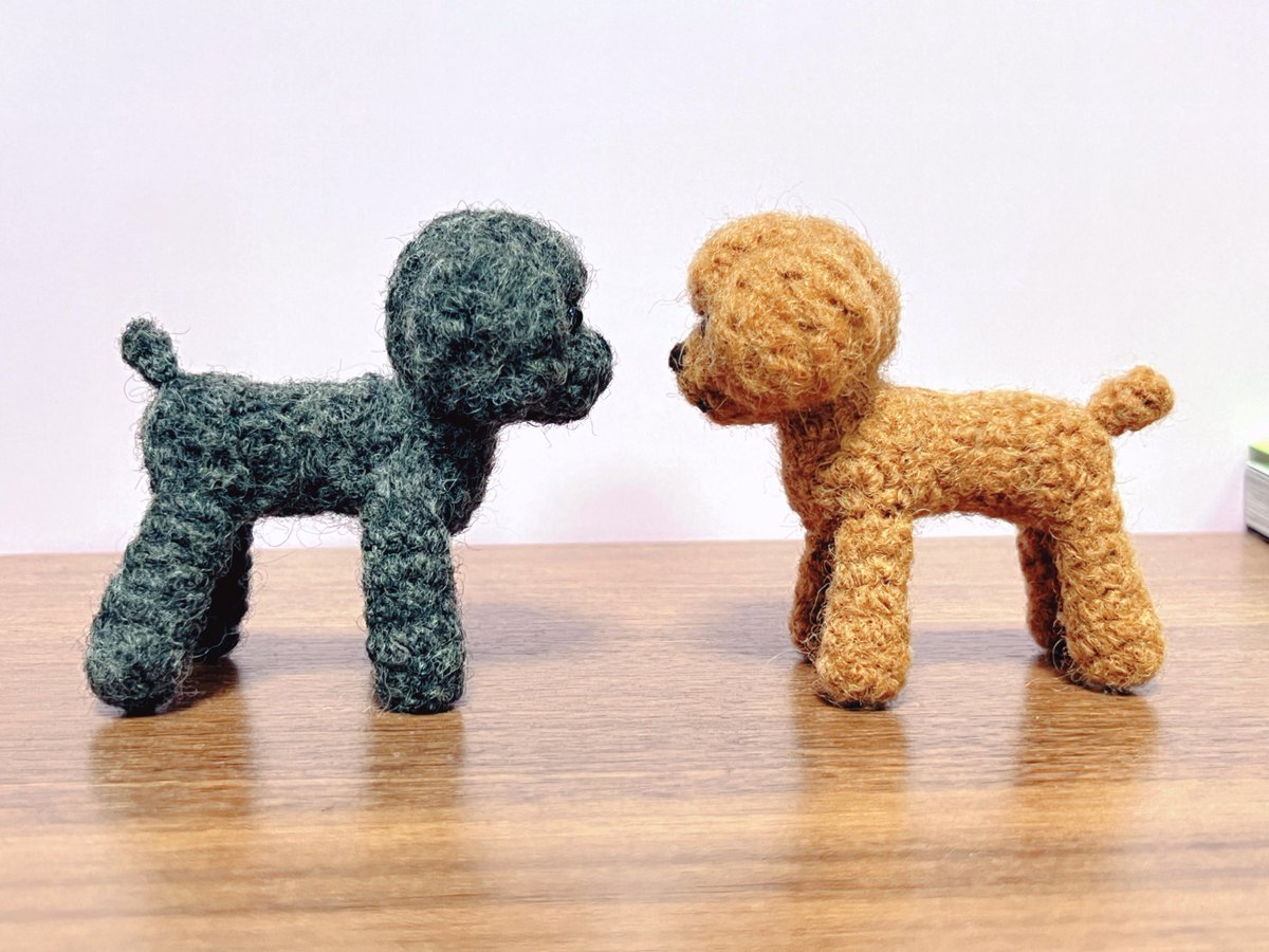 トイプーちゃん試作進捗。 ヤバい!! さし目と一緒に入手した、羊毛フルフィールってのを使ったら、めっちゃもこふわになった🥰 まだ一部元のままのとこあるけど、もこふわさの違いがよく分かる気がする。 #羊毛フェルト twitter.com/haguminu/sta…