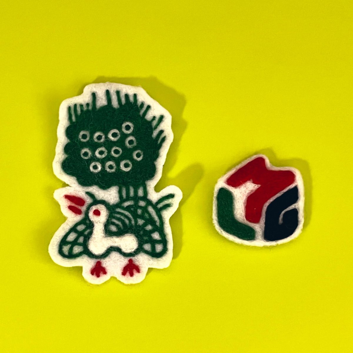 作りかけで放置してたイーソー、完成させたよ〜🦚 Mリーグロゴと一緒に小5の給食エプロンのポケットに縫い付ける予定です。 (もちろん、2つとも小5の希望の柄です) #羊毛フェルト twitter.com/haguminu/sta…