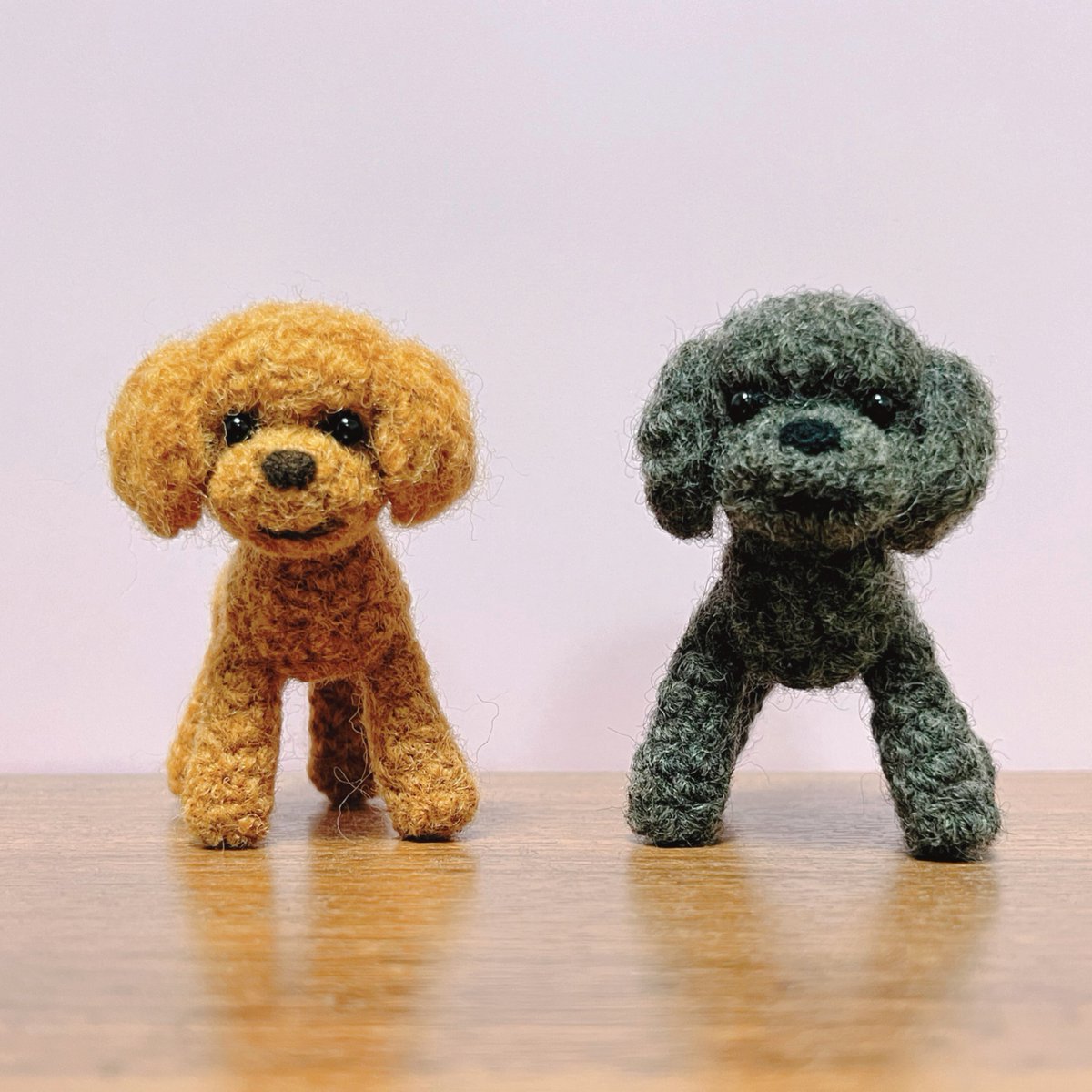 お久しぶりのオーダーわんこ進捗。 茶色い子も出来ました🐶 2体揃うと可愛さ倍増💕 これでワンセット完成したので、2セット目を進めていきます。 #羊毛フェルト twitter.com/haguminu/sta…