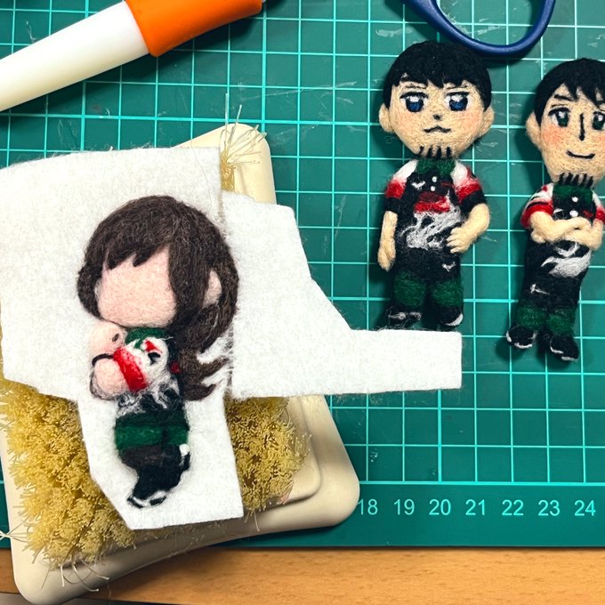 KONAMIガールズ #羊毛フェルト 進捗。 2人ともお顔以外が完成したので切り抜いてみました。 中々いい感じ〜🥰 あとは大事なお顔を入れたら完成だ🤞 twitter.com/haguminu/statu…