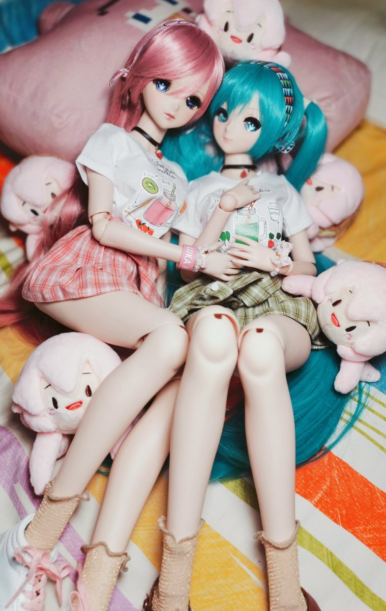 #ドルフィードリーム #dollfiedream #巡音ルカ #DD巡音ルカ そろそろDDルカ1号機のお迎え3周年記念....!うちのルカ3人そろって写真撮ってみました! 美しいカスタムメイク:@lapiscoillg