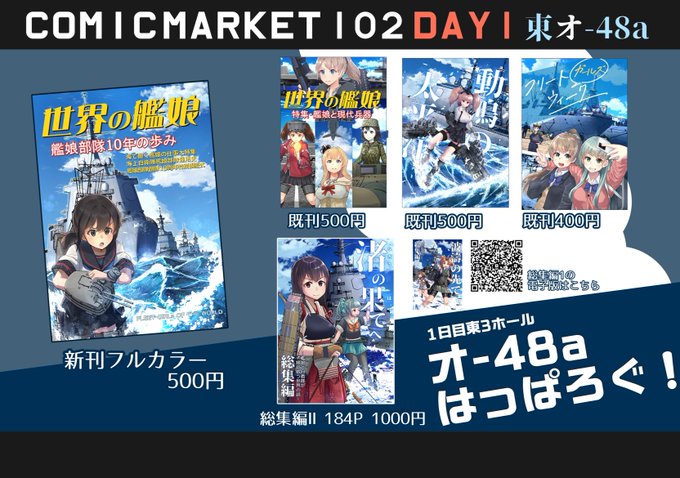 【C102新刊告知】 一日目 東3ホール オ-48a「はっぱろぐ!」 「世界の艦娘 艦娘部隊10年の歩み」 某有名な雑誌をモチーフにしたフルカラーイラスト集です 詳細はPixivもしくはメロンへ Pixiv:pixiv.net/artworks/11040… メロン:melonbooks.co.jp/detail/detail.…