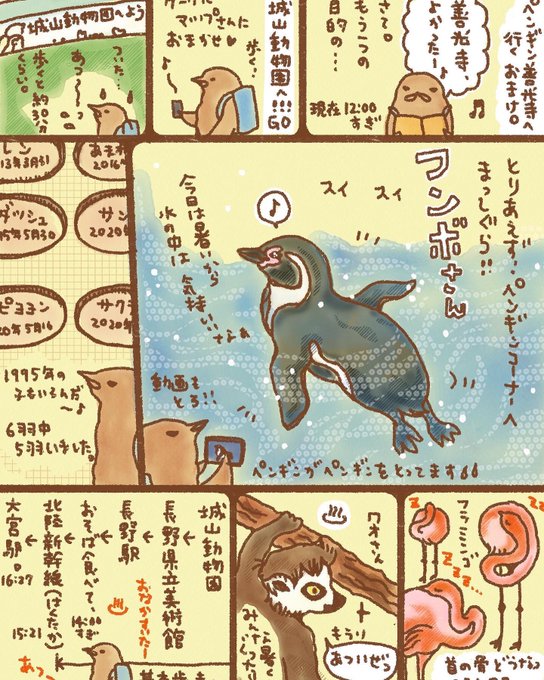 【#ペンギン善光寺に行く おまけ🐧】 善光寺参り後の、お楽しみです🙏 #イラスト #ペンギン #絵日記 #コミックエッセイ #8185930号 #城山動物園