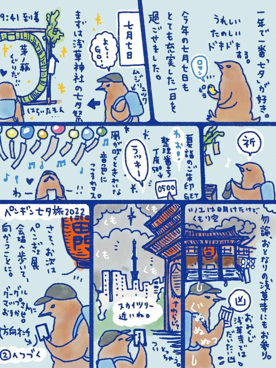 0 16 【#ペンギン七夕旅2022 ①🎋】 🙏アップが遅くなりましたが、今年の7/7の記録です🐧🎋 #イラスト #絵日記 #コミックエッセイ #ペンギン #8185930号 22/07/17 13:15